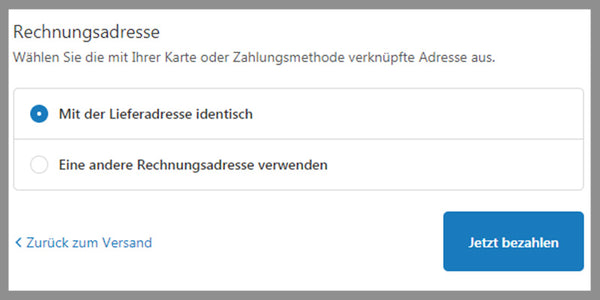 - Füllen Sie Ihre Rechnung und Lieferadresse